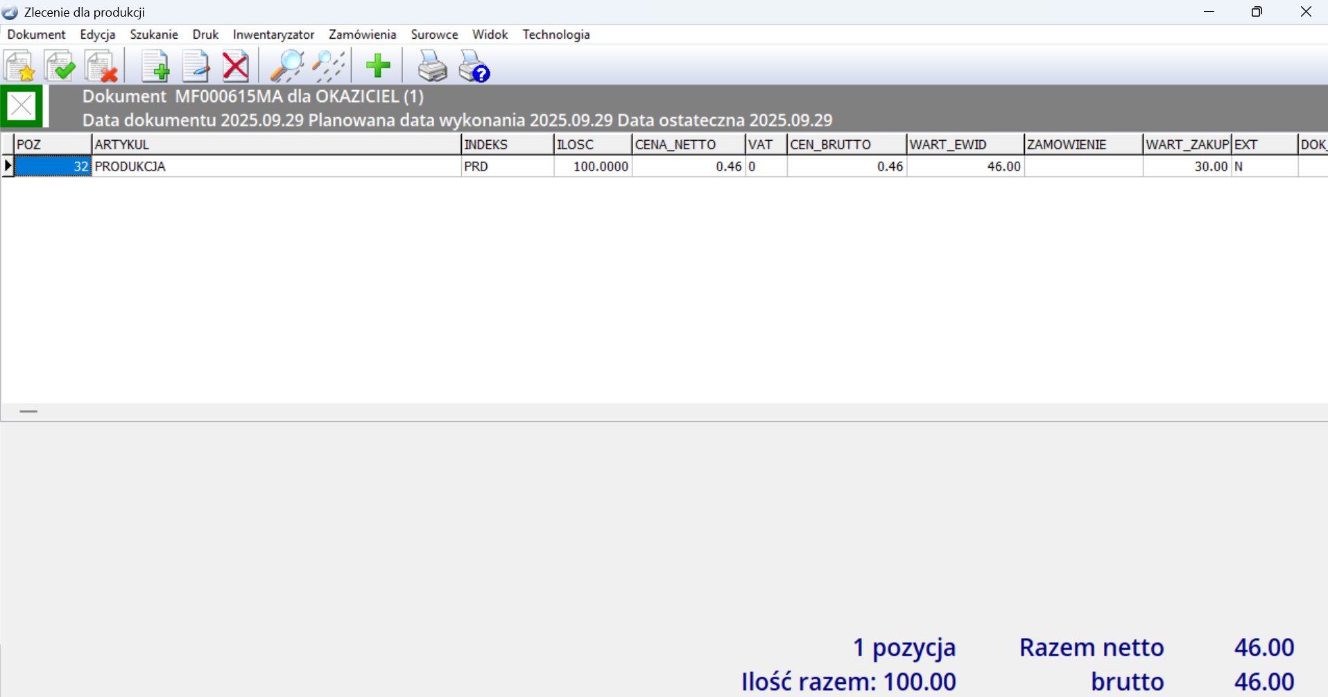 Receptura taka zawiera nie tylko potrzebne materiały, ale także wszelkiego rodzaju innego zasoby i koszty związane z wytwarzaniem. Dzięki temu już na etapie planowania jesteśmy w stanie dość dokładnie oszacować jednostkowe koszty wyrobu. Koszty dokładne uzyskamy po ostatecznym rozliczeniu dyspozycji, gdyż w trakcie produkcji będzie rejestrowane faktyczne zużycie surowców, które niejednokrotnie odbiega od zużycia normatywnego.
