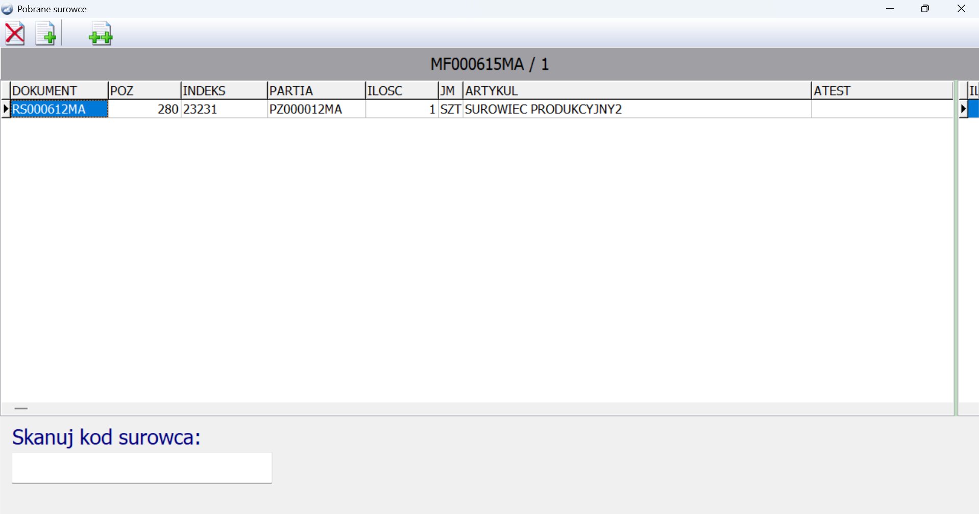 Rejestracja zużycia surowców może odbywać się w sposób bardzo prosty, automatycznie według receptur, ale może też zostać poddana rygorom ewidencyjnym. Wówczas osoba pobierająca surowiec skanuje kod kreskowy, który jest oznaczony. W efekcie dla każdej sztuki produktu można uzyskać szczegółowe dane na temat jego składników: źródła ich pochodzenia, numeru partii, daty dostawy. Pozwala to na wykrywanie i eliminowanie źródeł wad i braków.